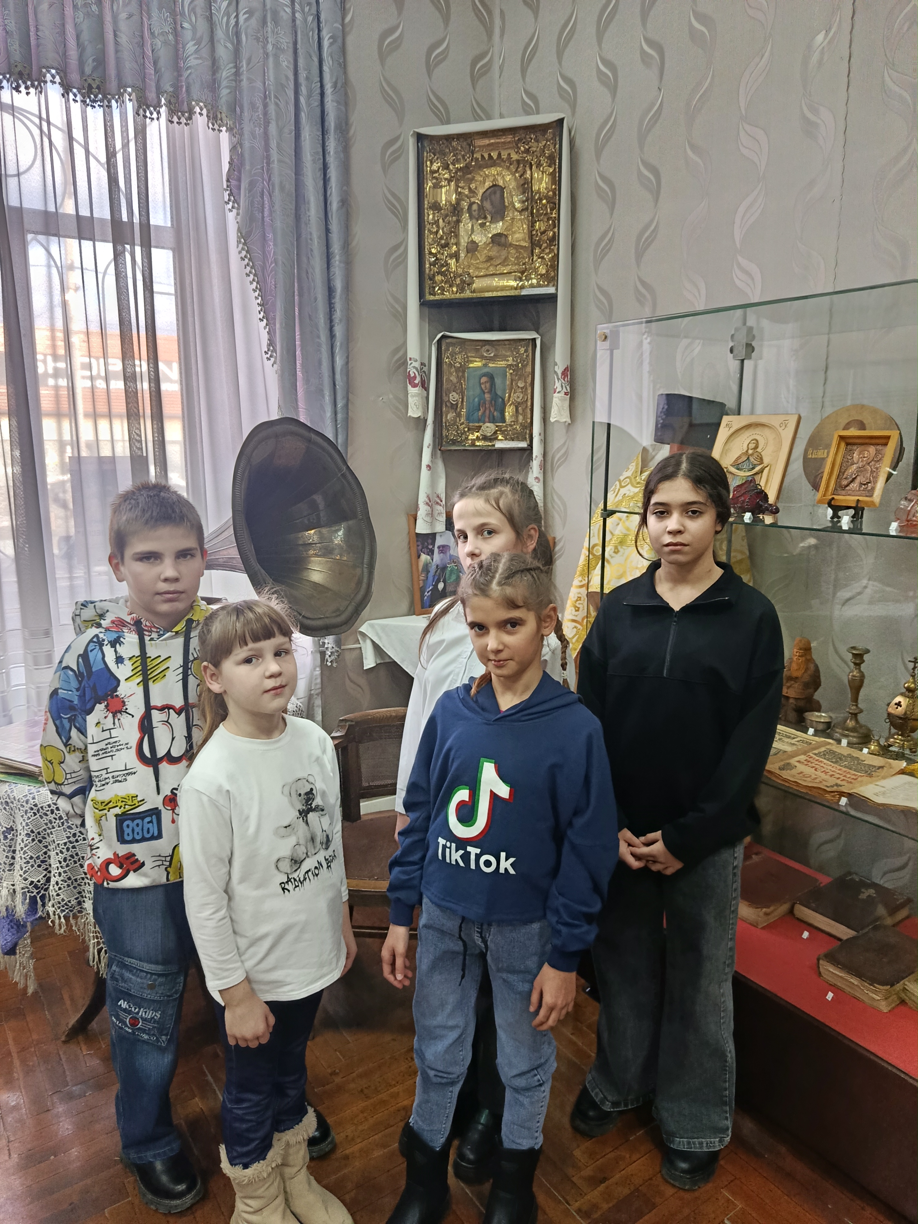 Воспитанники нашего учреждения посетили «Славянский историко-краеведческий музей». В музее дети познакомились с экспонатами разных времен, начиная с древних. Ребята ознакомились с жизнью простого казачества, с экспонатами военных лет и историей советского периода. Они увидели предметы быта казаков, старые бабушкины пряли, домашнюю утварь, инструменты с которыми работали в поле, археологические и этнографические коллекции. Затаив дыхание, воспитанники слушали рассказ о ВОВ, о тяжелых испытаниях, которые выпали на долю нашего народа. Далее воспитанники участвовали в викторине и отвечали на вопросы по военной тематике. Экскурсия была интересной и познавательной, и направленная на формирование любви к малой Родине, чувства гордости за свой народ и егo героическое прошлое.